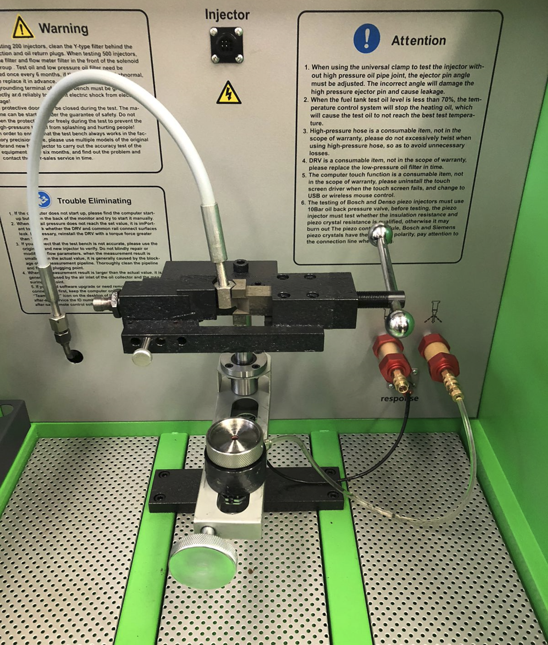 Тестирование ведется в режиме реального времени. В один процесс тестирования можно работать с одной форсункой. Все результаты возможно сохранять в системе стенда или на внешней карте памяти USB FLASH. Также результаты теста можно вывести на принтер (приобретается дополнительно). В CARLAND CR318-S задана возможность автоматической настройки давления рабочей жидкости на тестируемой форсунке.